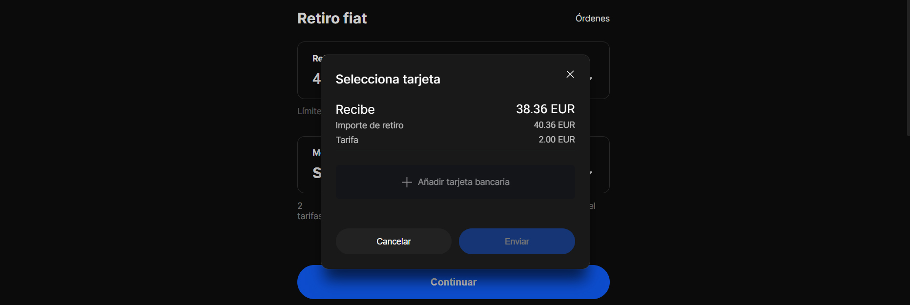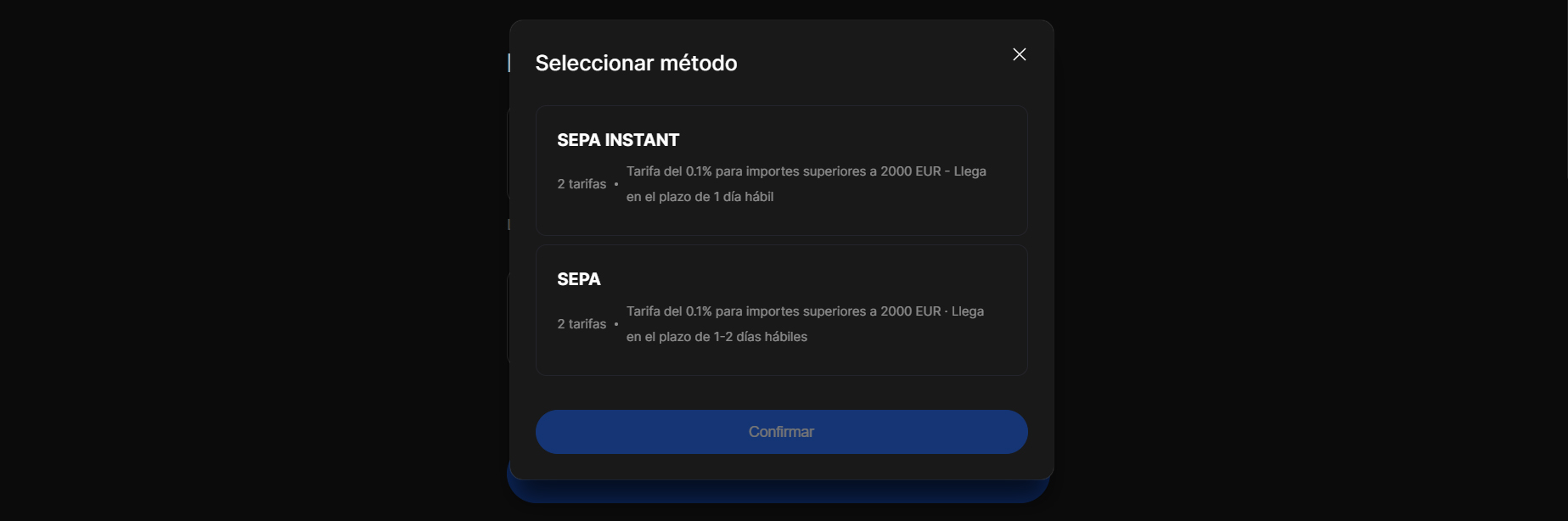 6º Seleccionamos el que más nos conviene (Recomendamos SEPA, no SEPA INSTANT, tiene unas altas comisiones por el banco), confirmamos y luego pulsamos Continuar.